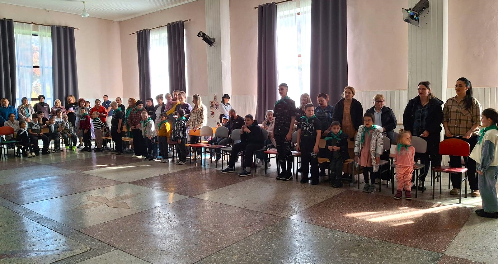 По традиции наставники-педагоги повязали ребятам галстуки, а каждая группа детей и родителей громко представила девиз и речевку.