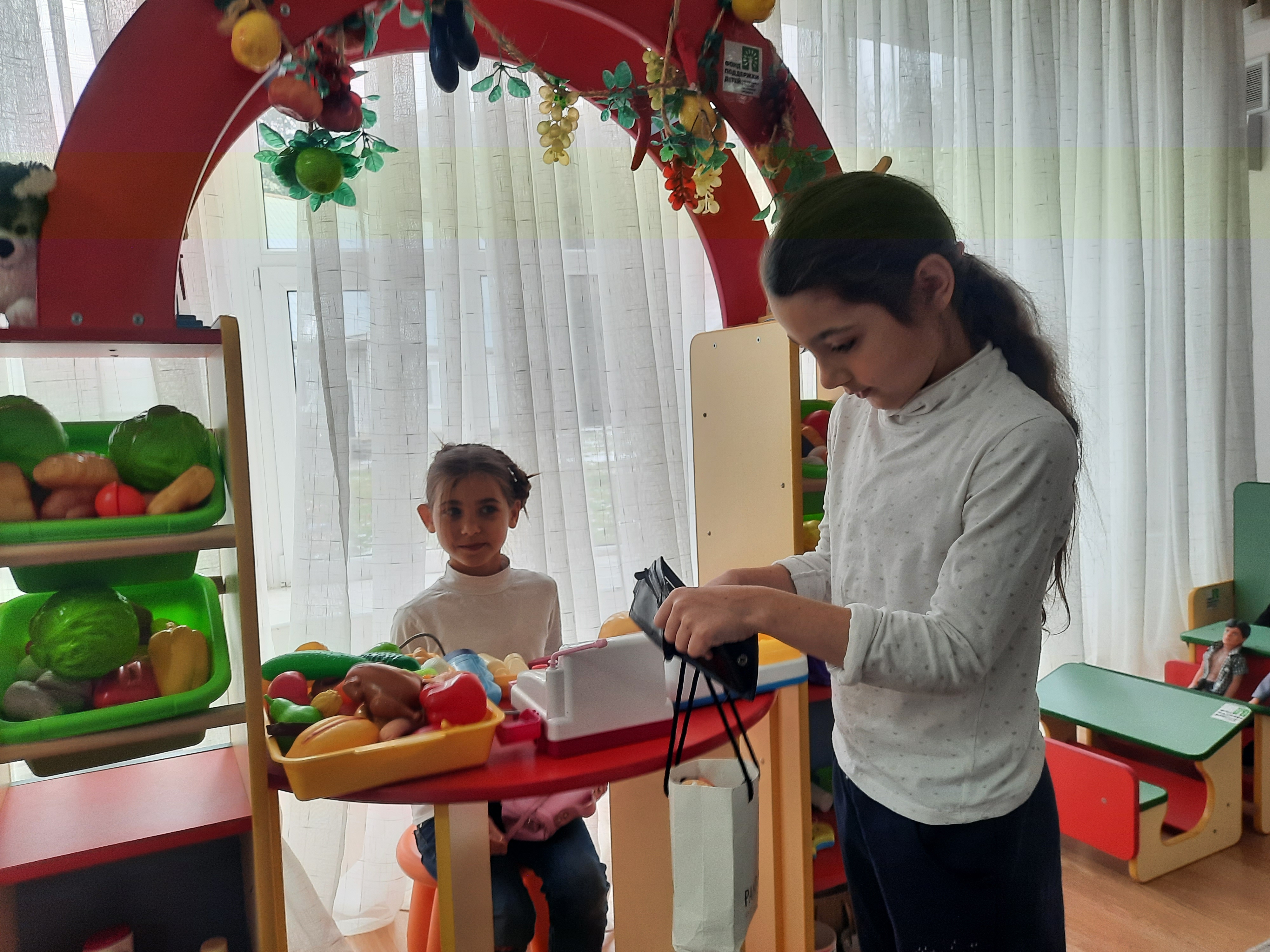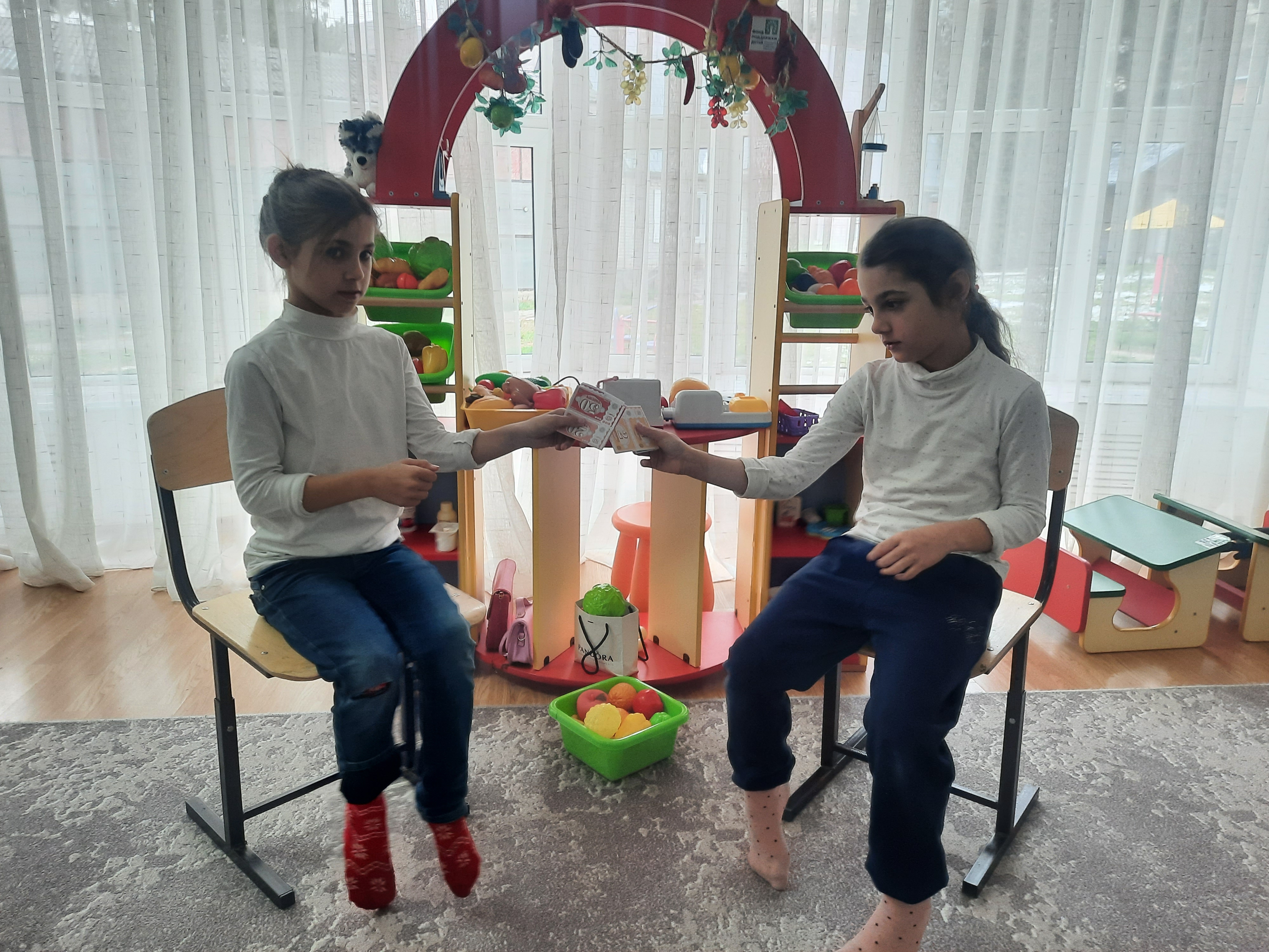 Каждая команда выполняла задания по станциям: «Супермаркет», «Овощи и фрукты», «Дорого - дешево» и получала вознаграждение за выполнение (жетоны). В завершении игры прошли подсчеты заработанных жетонов и определились победителя с наибольшим количеством жетонов.
