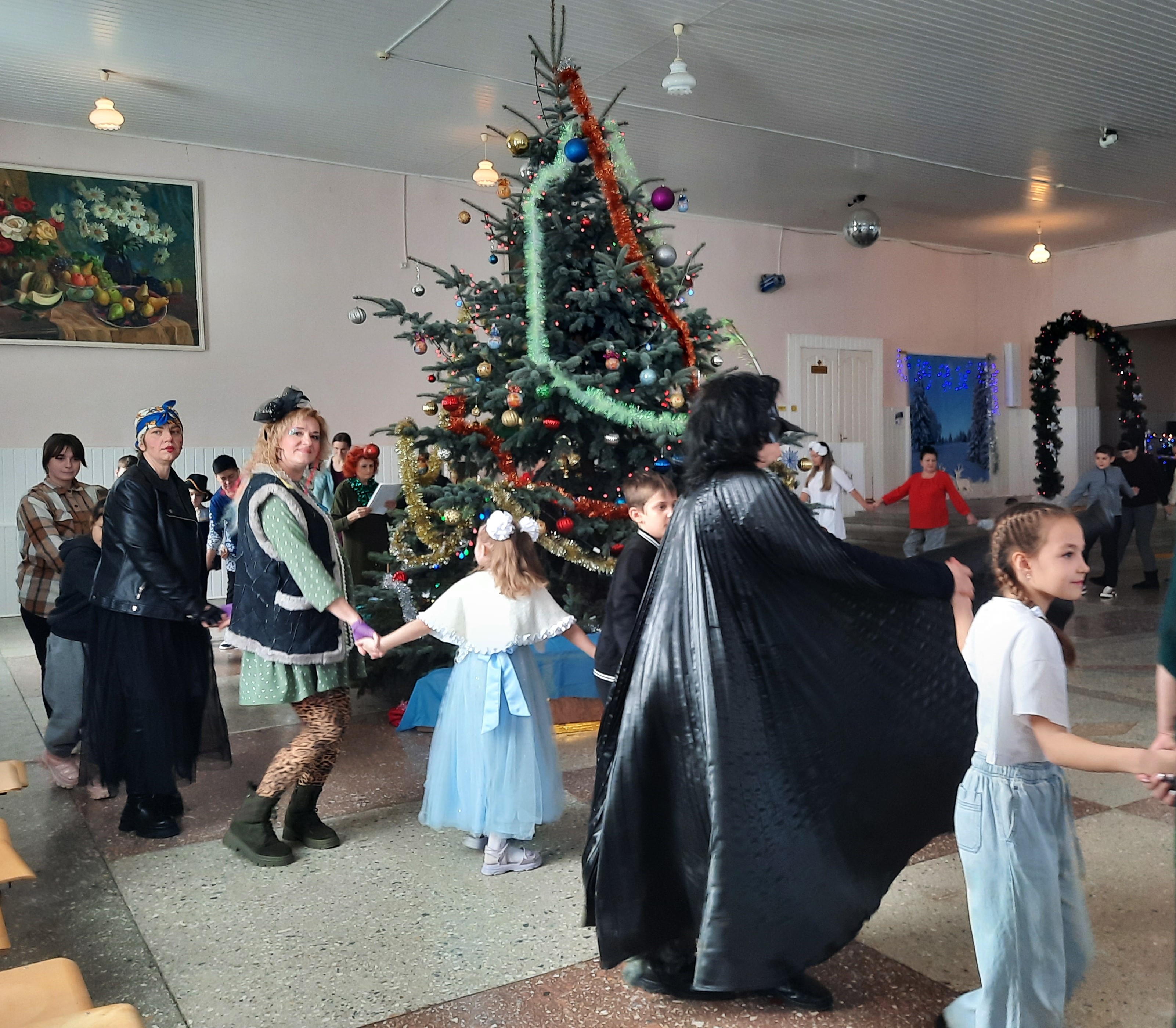 Всем знакомые сказочные герои – две Бабы-Яги, Метелица, Снеговик, волшебный Гном, Ворона, Дед Мороз и Снегурочка пришли поздравить ребят с наступающим Новым годом. Персонажи порадовали деток и родителей играми, конкурсами, веселыми хороводами и танцами.