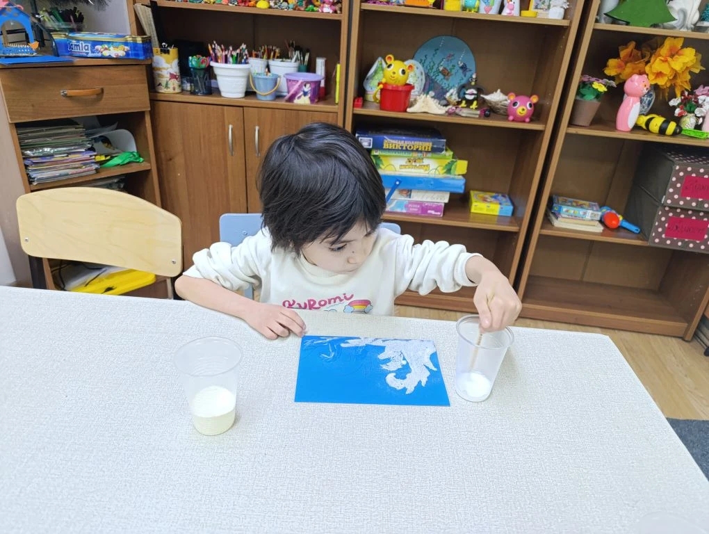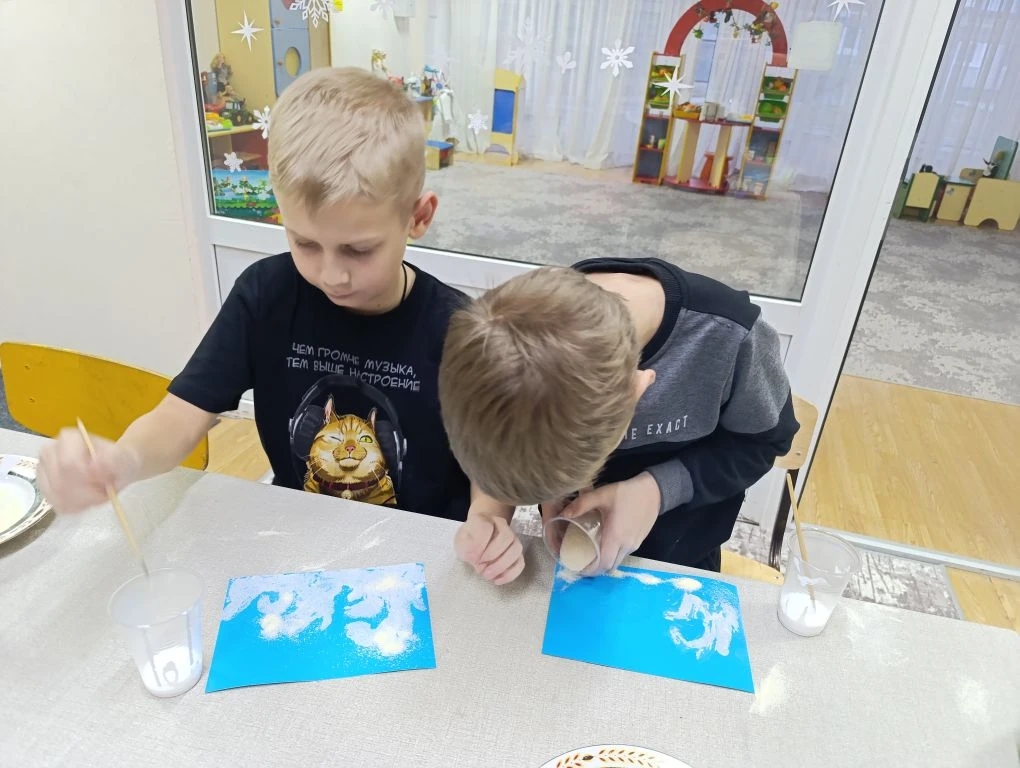 В стационарном отделении «Мать и дитя» Краевого реабилитационного центра «Орлёнок» состоялся мастер-класс в технике рисования манной крупой «Морозные узоры».