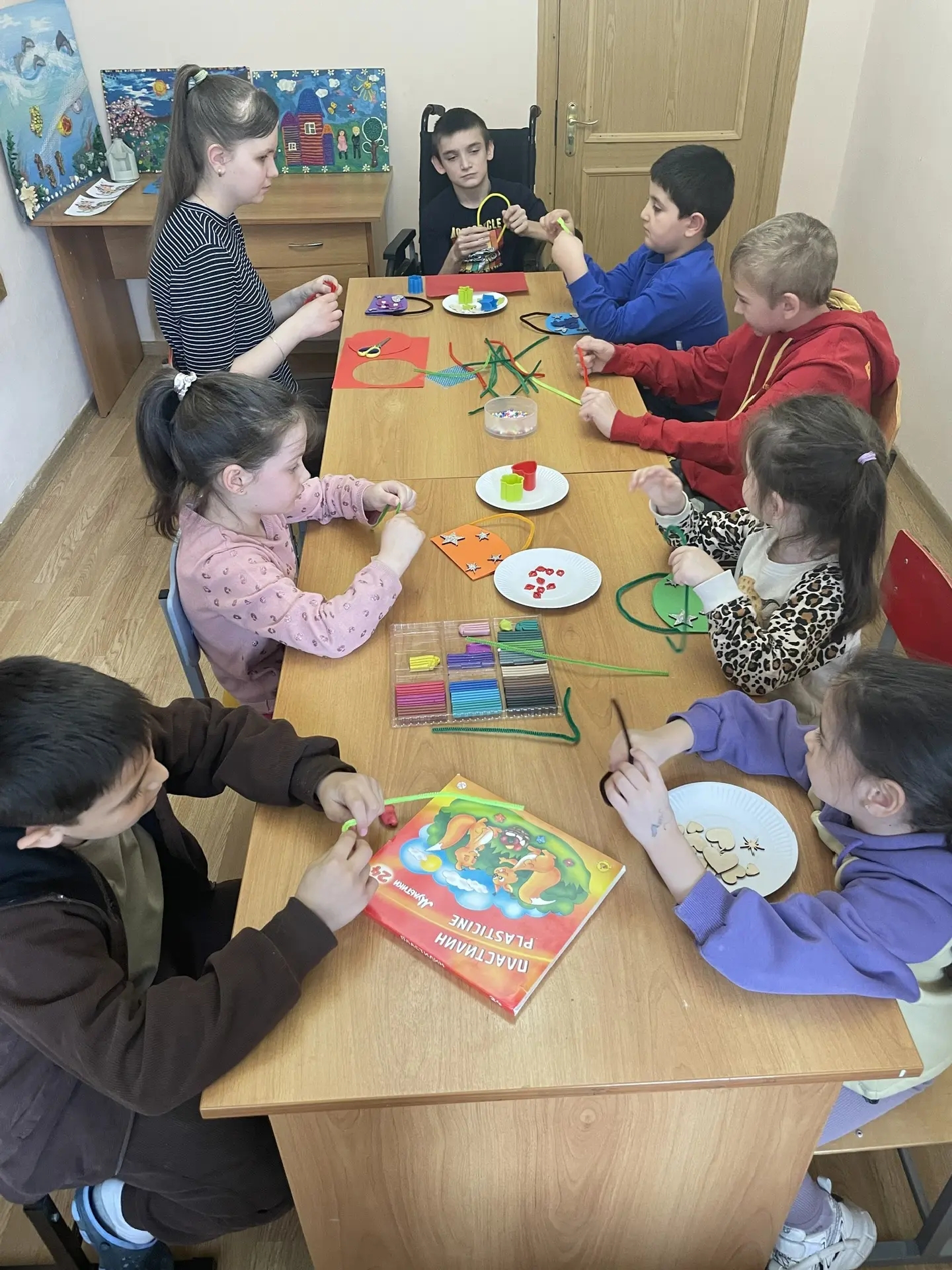 Для работ ребятам понадобилось: цветной картон и бумага, синельная проволока, пластилин, клей, ножницы.