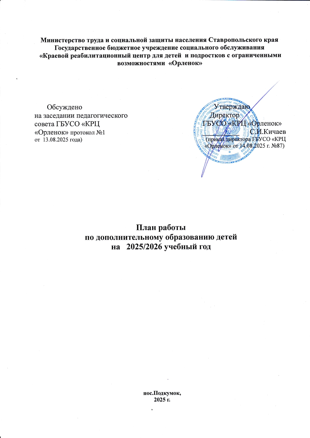 > План работы по дополнительному образованию детей на 2025-2026 учебный год